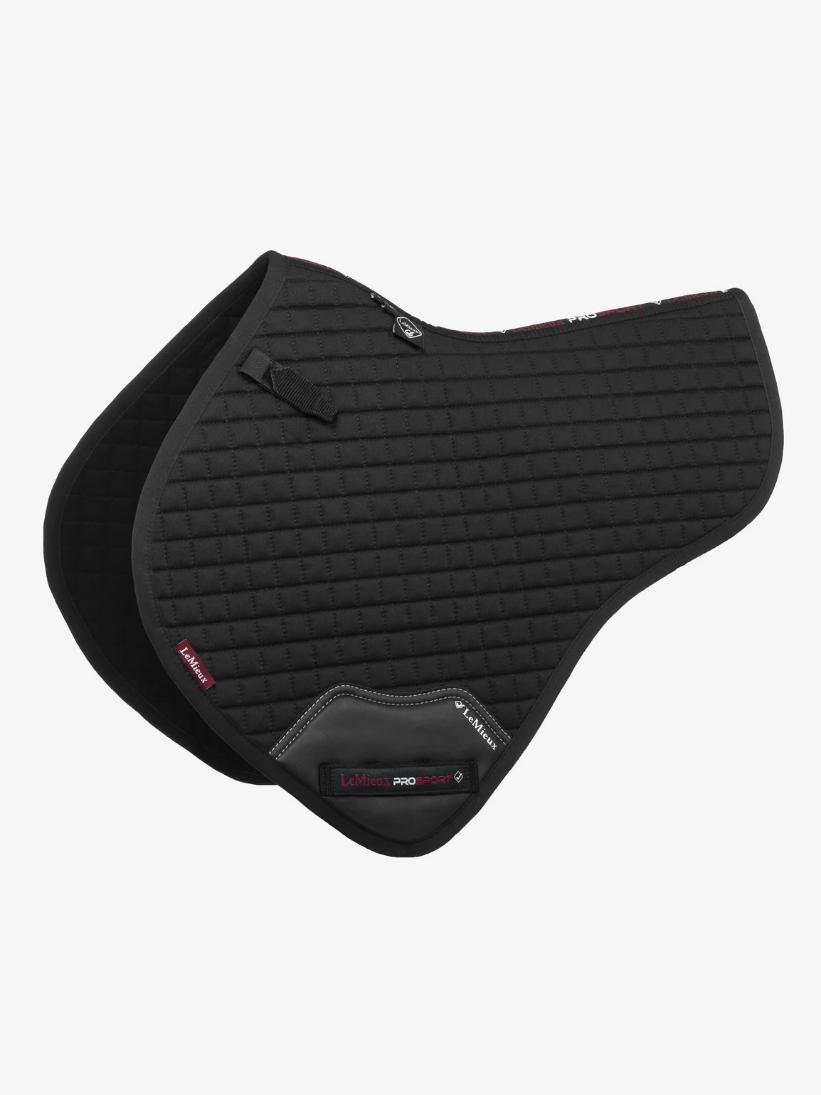 The LeMieux plain cotton Half Square is designed for the competitive rider offering modern style & performance. The more streamline half cut profile is cooler than a full square and less bulky, making it one of the least restrictive jumping pads. With its high wither, elasticated D-Ring tabs and signature teardrop girth protection area this is a very sporting looking pad.