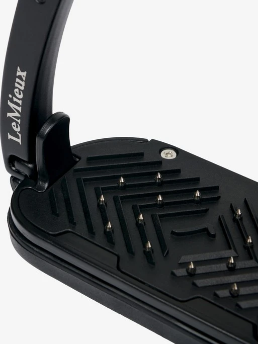 - The ergonomic footplate of the Control Stirrup is set at 0 degrees with a cross-track grip surface with embedded hardened steel pins to provide maximum security of the boot